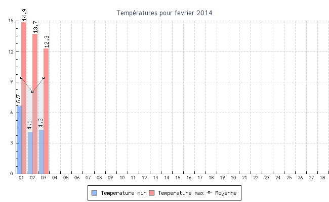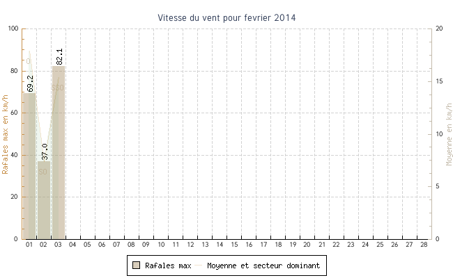 | 03 | 4.3 °C | 12.3 °C | 9.4 °C | 15.4 km/h (82.1 km/h) | SSO |